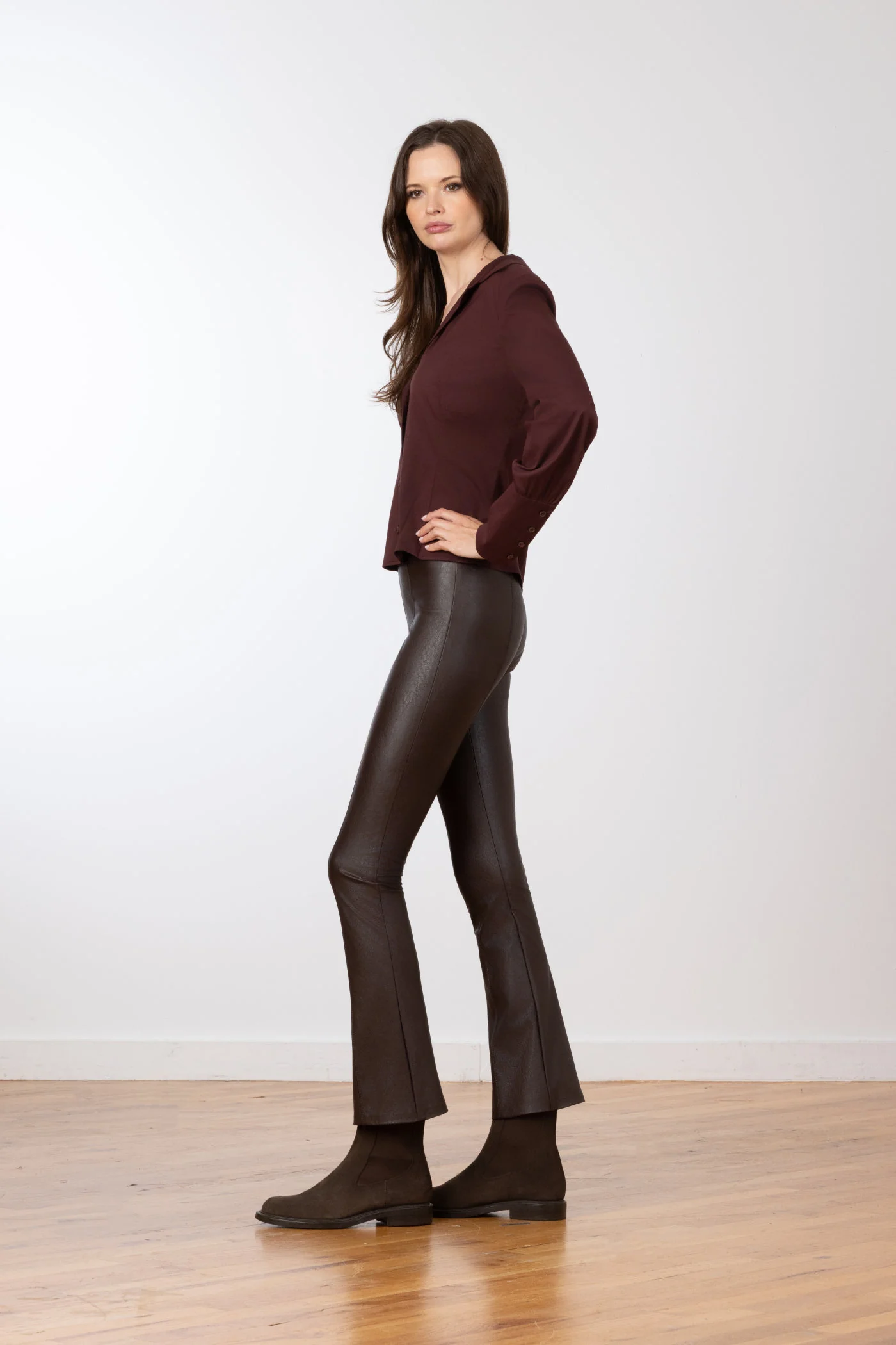 the Jet Set Pant is a cropped flare cut with a front seam. They are very comfortable thanks to the stretchy fabric and pull-on elasticated waistband. The jet set can be worn with all types of shoes, from high heels to sneakers, loafers and boots!