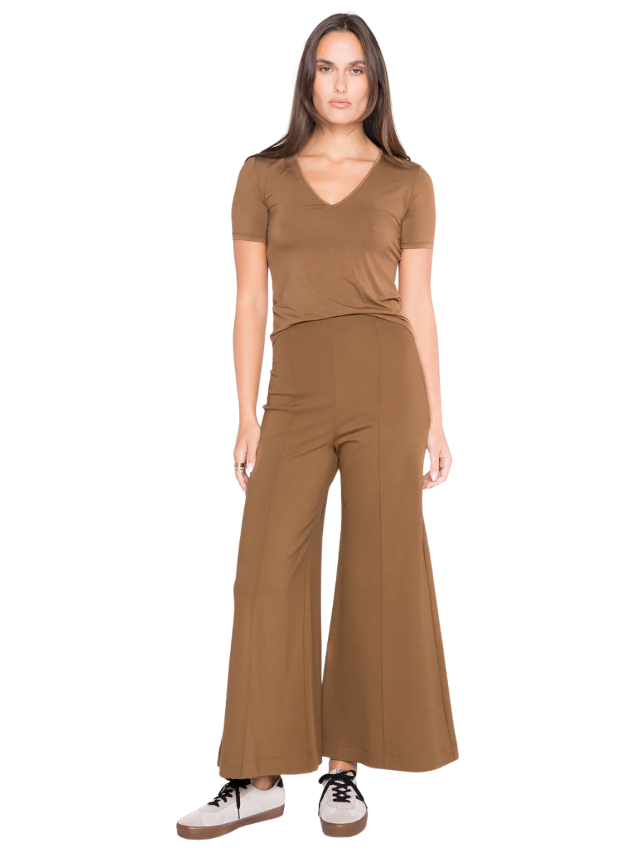 This wide leg cropped pant is the perfect basic piece for the fall. Its ponte knit gives you the structured look with all day comfort. With excellent memory, it never loses its shape, offering a refined fit and luxurious feel, season after season.