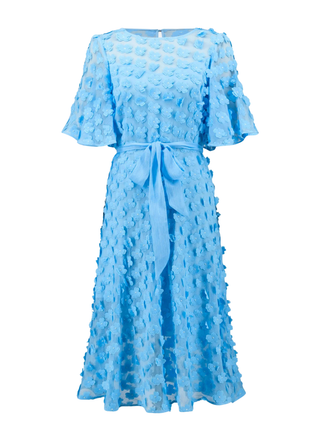 Signature 3D Embroidered Chiffon Fit Flare Dress With Sash Belt