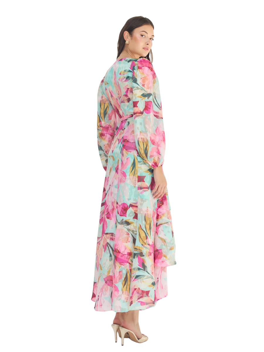 Long sleeve high low hem wrap dress